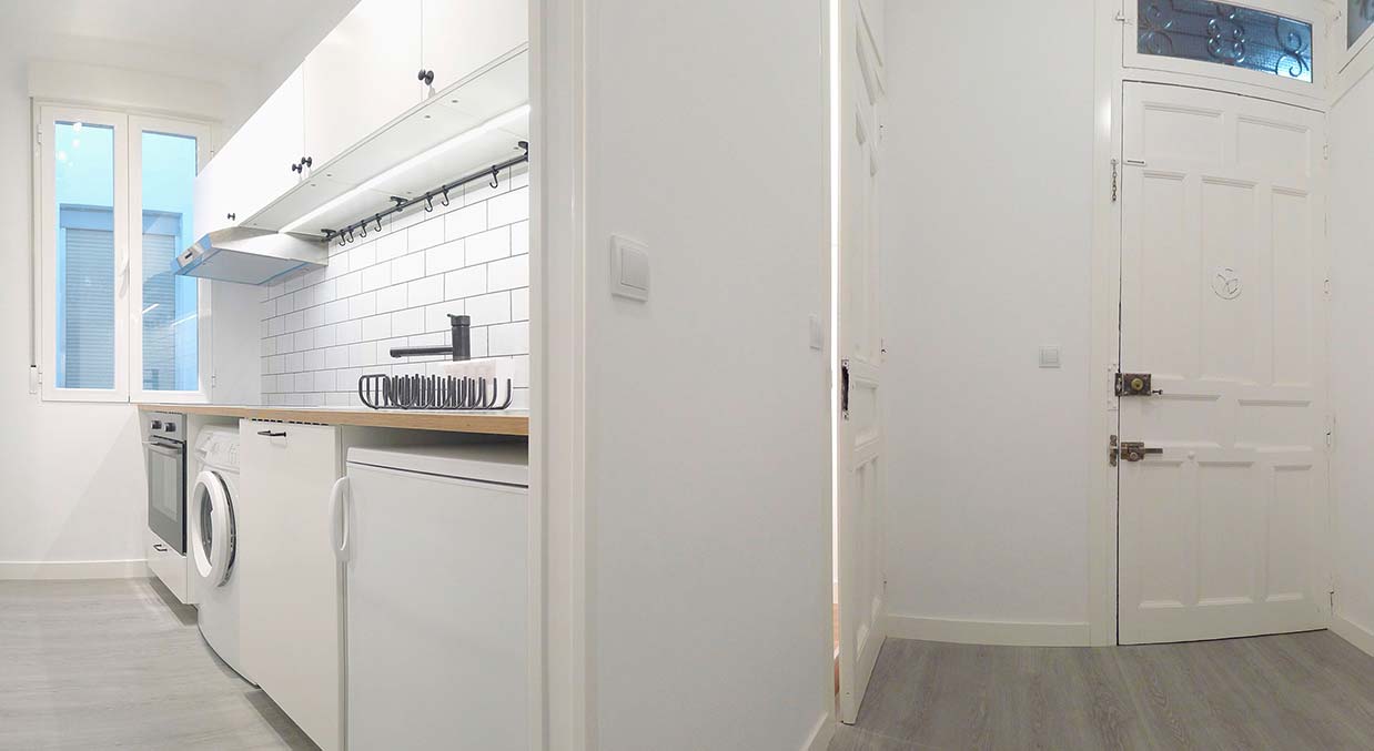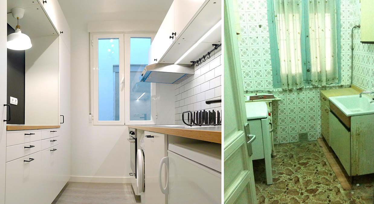 Complete refurbish of this small apartment with old distribution, by knocking down the interior walls we created an space that feels open and brighter.