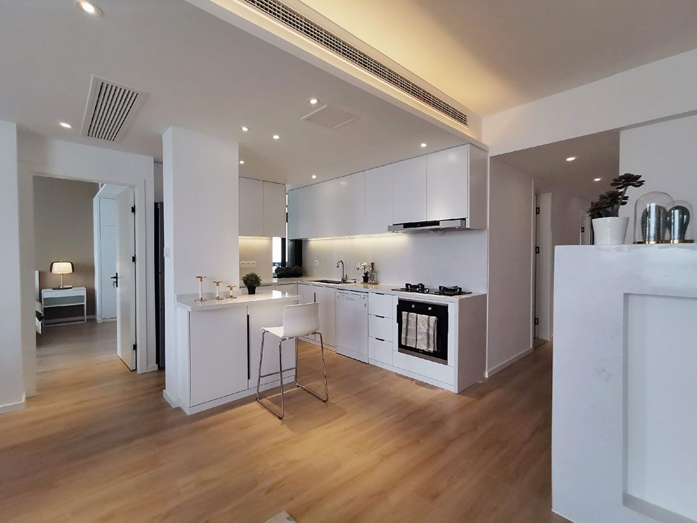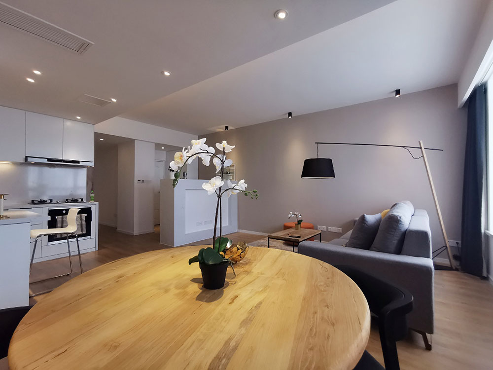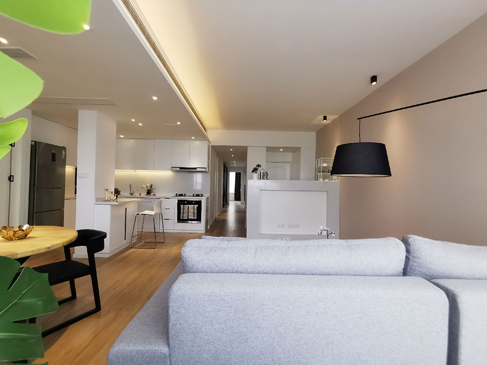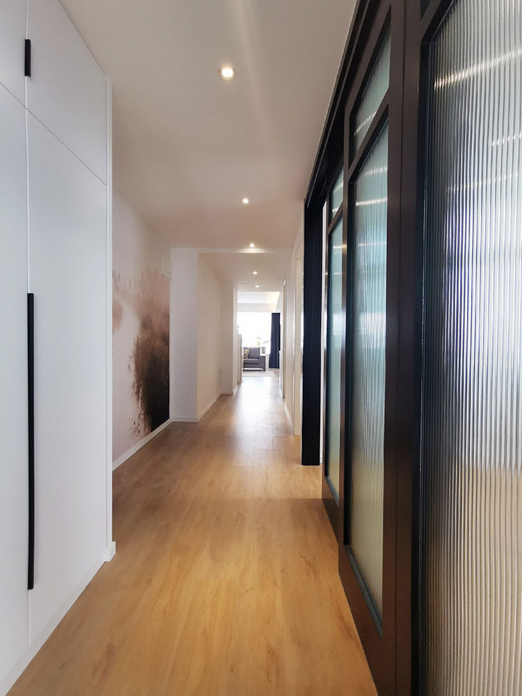 Originally two bed apartment, we create a three bed apartment with beautiful views and light. A difficult task in an old flat with complicated structure and impossible spaces that wouldn’t allow us to break as many walls as we wanted. With great success, we opened up from the entrance introducing the heart of the home with the bedrooms at either sides. A third bedroom-studio opens up completely with sliding doors breaking up the long corridor and creating balance.