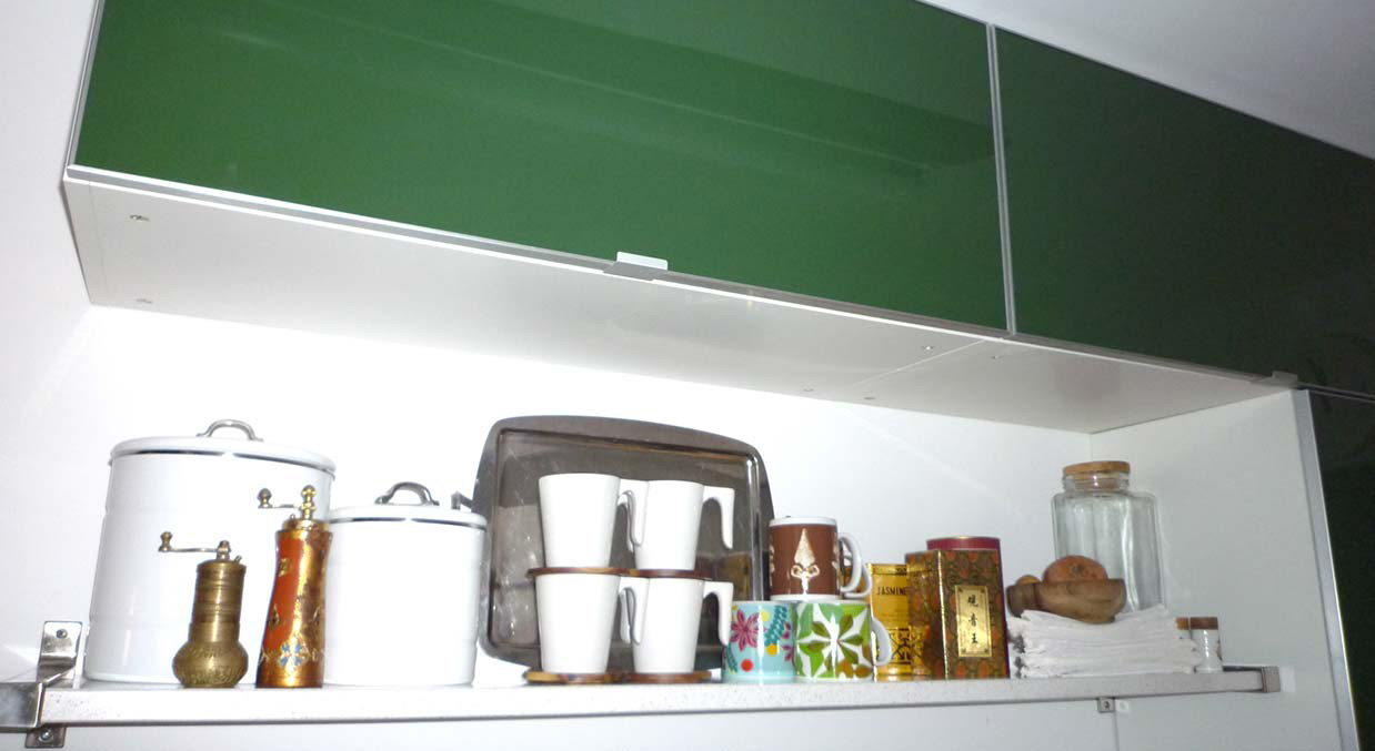Complete refurbish of this alley kitchen originally with dark wood cupboards and free-standing fridge, there was no space for more than one person inside and not inviting to cook at all. By creating different areas with colour we made an ‘espectacular transformation’ quote from the client.